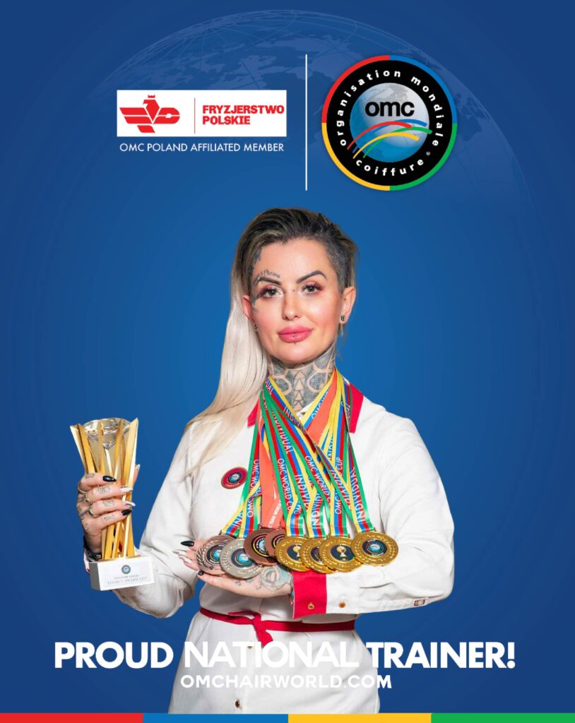 Iwona Ostrowska er også underviser og træner i Organization Mondiale Coiffure (OMC). Denne organisation er verdens førende autoritet inden for frisør- og skønhedsbranchen.